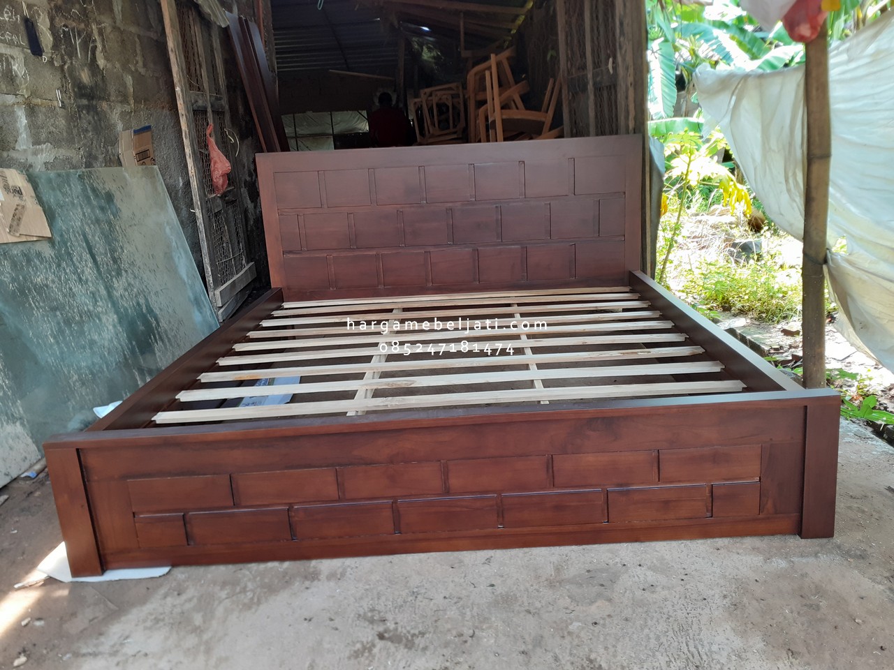 Dipan Ranjang Tempat Tidur Kayu Jati Minimalis 2 Laci HMJ-TTD 43