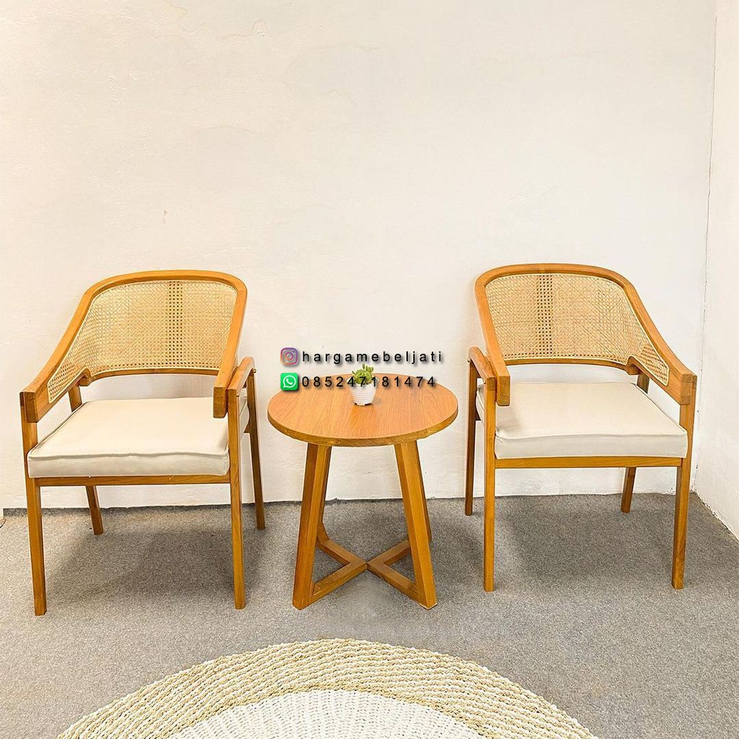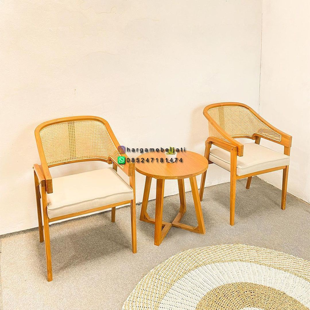 Set Kursi Teras Minimalis Kayu Jati + Anyaman Rotan Finishing Natural HMJ-SKATRS 14